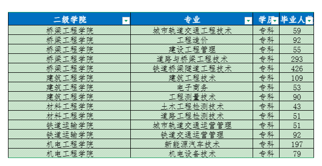 武汉铁路桥梁职业学院2025届毕业生共1690人,详情见下图: