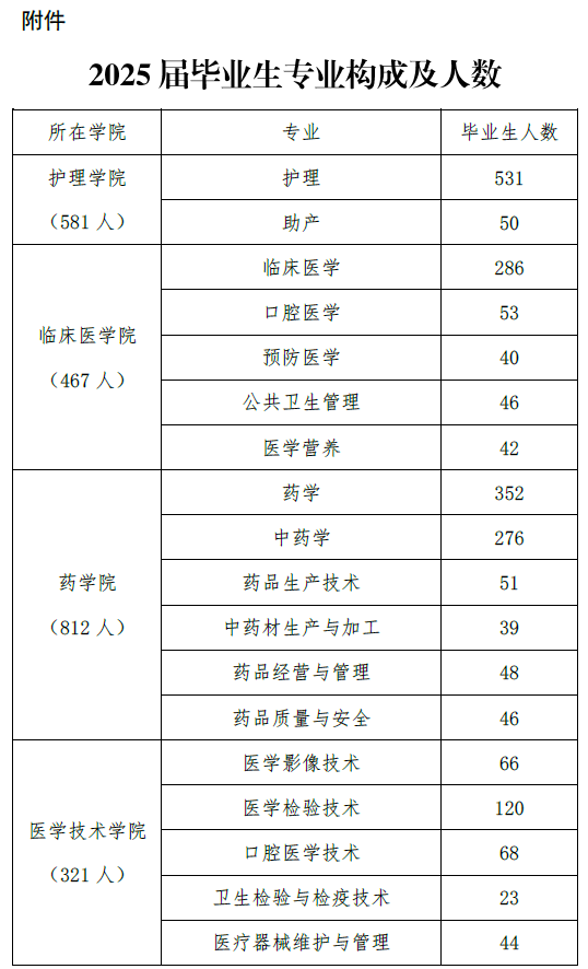 四川中医药高等专科学校2025届毕业生共3160人,详情如下: