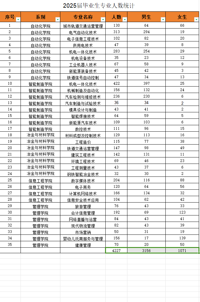 四川机电职业技术学院2025届生源信息 四川机电职业技术学院2025届毕业生共4227人,其中,女生1071人,男生3156人,详情如下: 推荐阅读四川机电职业技术学院就业指导中心联系方式四川生源信息查询系统