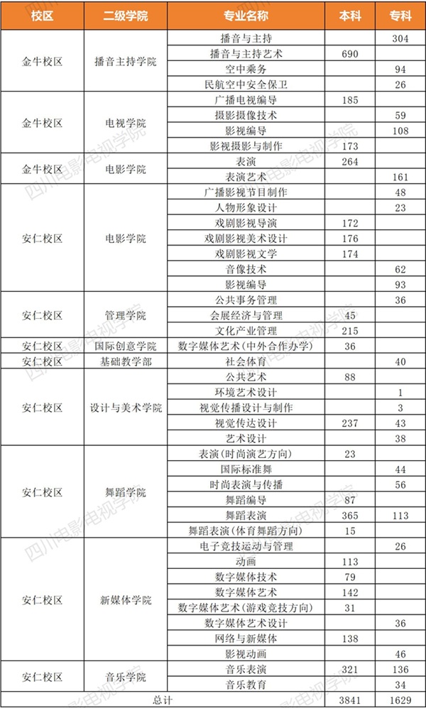 四川电影电视学院2025届生源信息 四川电影电视学院2025届毕业生共5470人,其中,本科毕业生3841人,专科毕业生1629人,详情见下图: 推荐阅读四川电影电视学院就业指导中心联系方式 四川生源信息查询系统