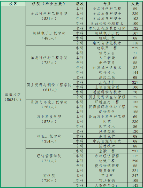 山东农业工程学院淄博校区2026届毕业生共5024人,详情见下图:
