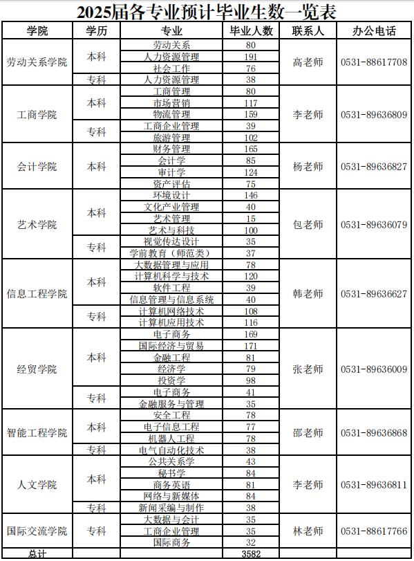 山东管理学院2026届生源信息 山东管理学院2026届毕业生共4819人,详情见附件: 附件:山东管理学院2026届各专业预计毕业生数一览表.xlsx 山东管理学院2025届毕业生共3582人,详情见下图: 推荐阅读山东管理学院就业指导中心联系方式 山东生源信息查询系统