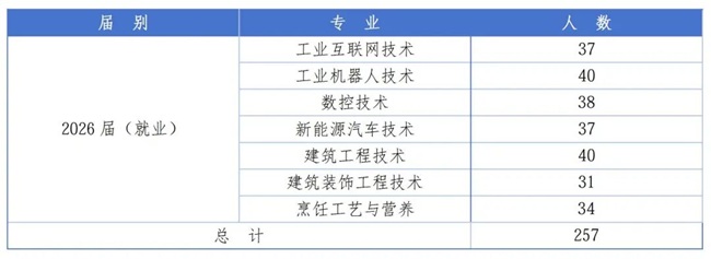 上海科创职业技术学院2026届毕业生共257人,详情见下图: