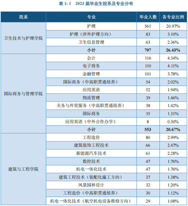 上海思博职业技术学院2023届毕业生共2675人,详情见下图: