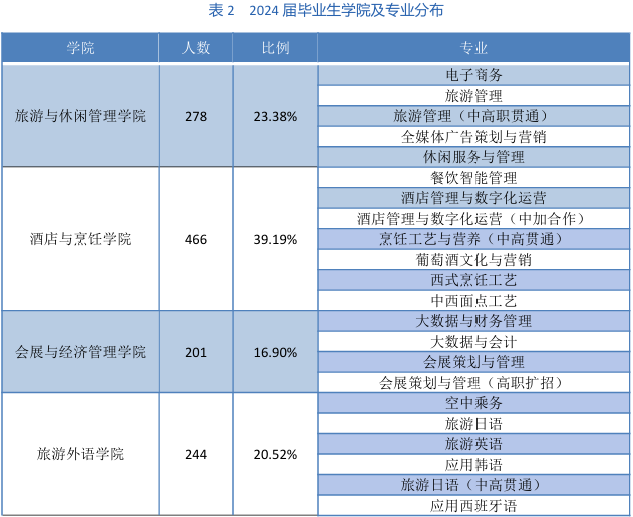 上海旅游高等专科学校2024届毕业生学院及专业分布如下图: