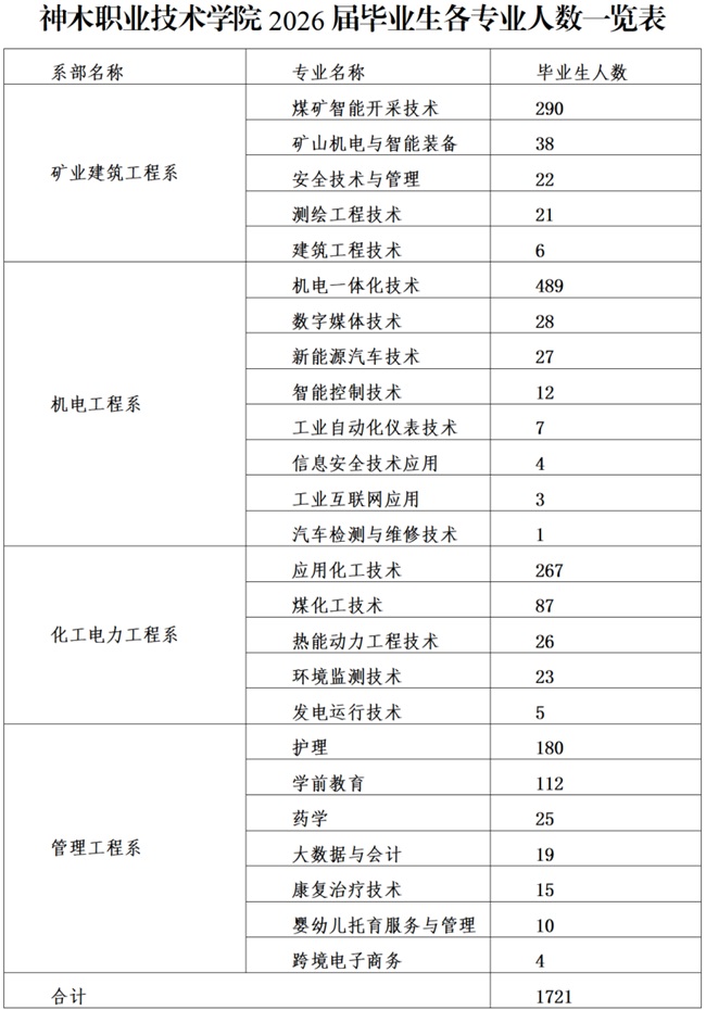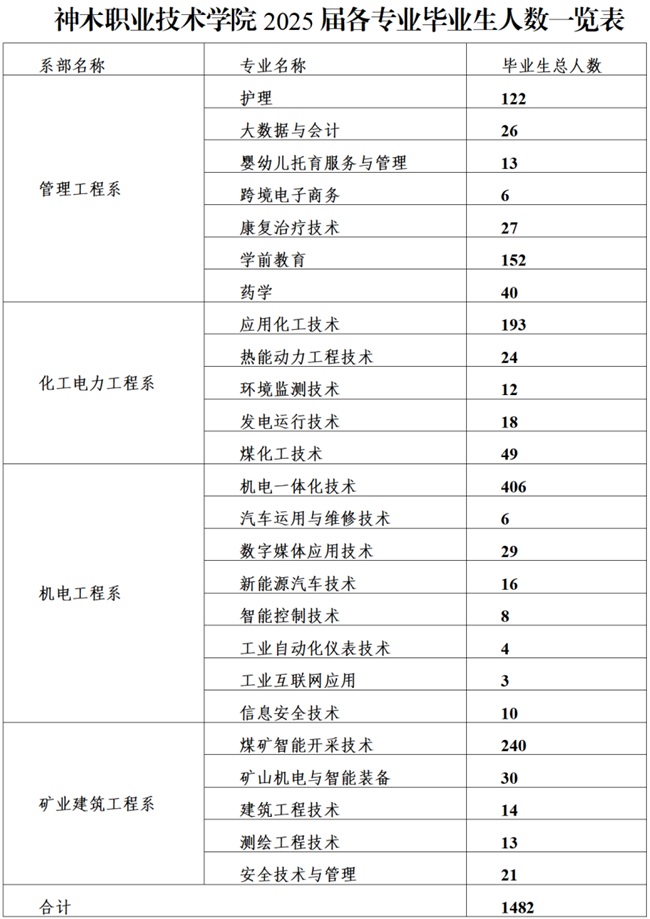 神木职业技术学院2026届生源信息 神木职业技术学院2026届毕业生共1721人,详情见下图: 神木职业技术学院2025届毕业生共1482人,详情见下图: 推荐阅读神木职业技术学院就业指导中心联系方式陕西生源信息查询系统