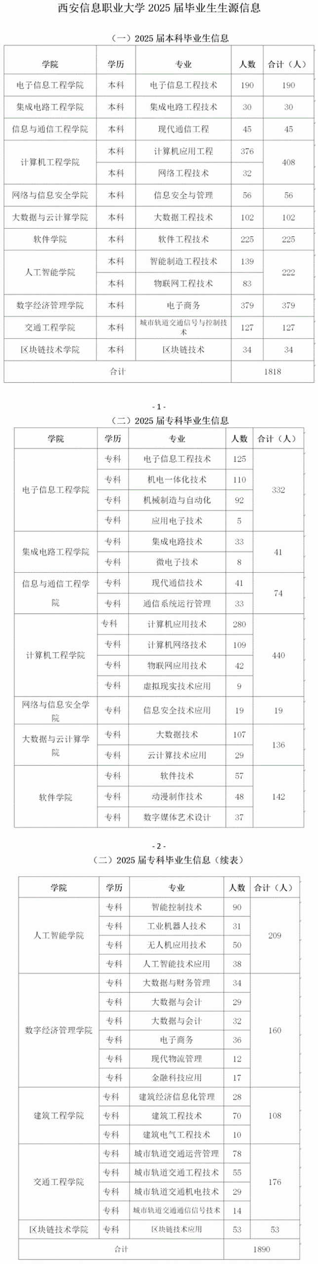 西安信息职业大学2026届生源信息 西安信息职业大学2026届毕业生共4972人,其中,本科毕业生2175人,专科毕业生2797人,详情见附件: 附件:西安信息职业大学2026届毕业生生源信息.doc 西安信息职业大学2025届毕业生共3707人,其中,本科毕业生1818人,专科毕业生1890人,详情见下图: 推荐阅读西安信息职业大学就业指导中心联系方式 陕西生源信息查询系统