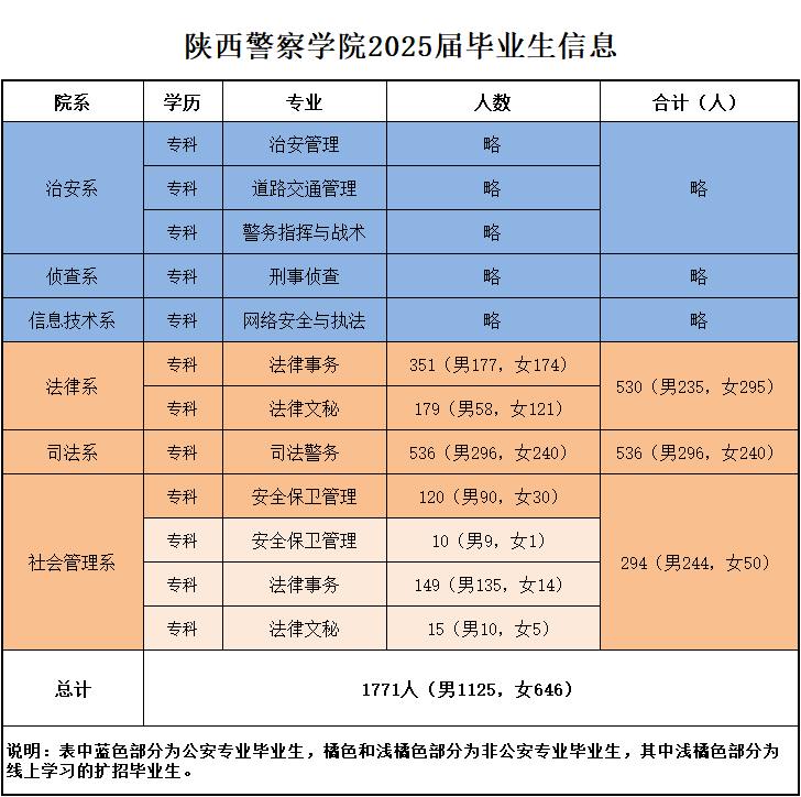 陕西警察学院2026届生源信息 陕西警官学院2026届毕业生共计1807名,分布在6个系,9个专业中。详情见下方链接: 链接:陕西警察学院2026届生源信息 陕西警官职业学院2025届毕业生共1771人,其中,女生646人,男生1125人,详情如下: 推荐阅读陕西警官职业学院就业指导中心联系方式 陕西生源信息查询系统