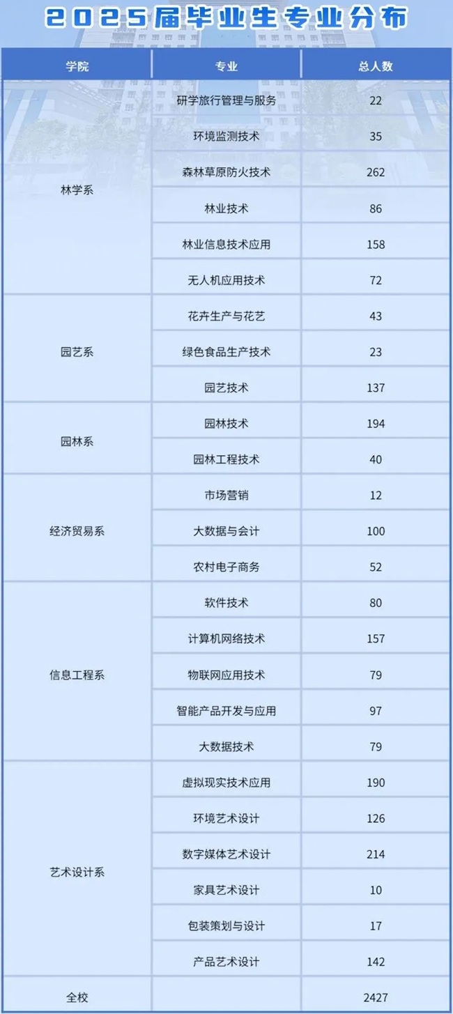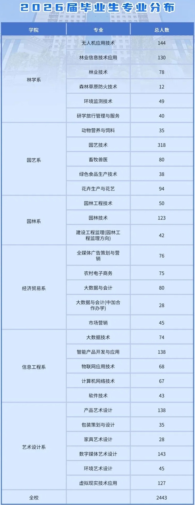 山西林业职业技术学院2026届生源信息 山西林业职业技术学院2026届毕业生共2443人,详情见下图: 山西林业职业技术学院2025届毕业生共2427人,详情见下图: 推荐阅读山西林业职业技术学院就业指导中心联系方式 山西生源信息查询系统