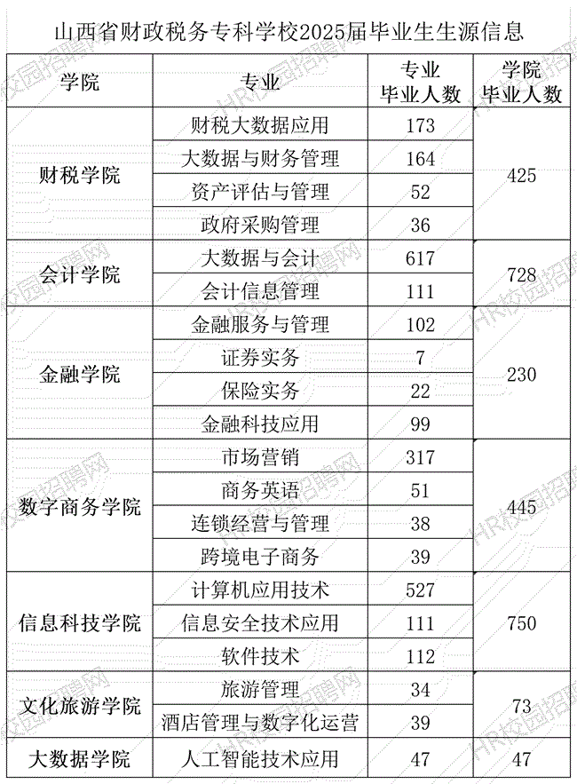 山西省财政税务专科学校2026届生源信息 链接:山西省财政税务专科学校2026届生源信息 山西省财政税务专科学校2025届毕业生共2698人,详情如下: 推荐阅读山西省财政税务专科学校就业指导中心联系方式山西生源信息查询系统