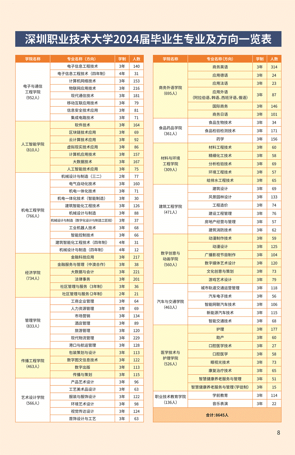 深圳职业技术大学2024届生源信息 深圳职业技术大学2024届毕业生共8645人,详情见附件: 附件:深圳职业技术大学2024届毕业生专业人数一览表.gif 推荐阅读深圳职业技术学院就业指导中心联系方式 广东高校生源信息查询系统