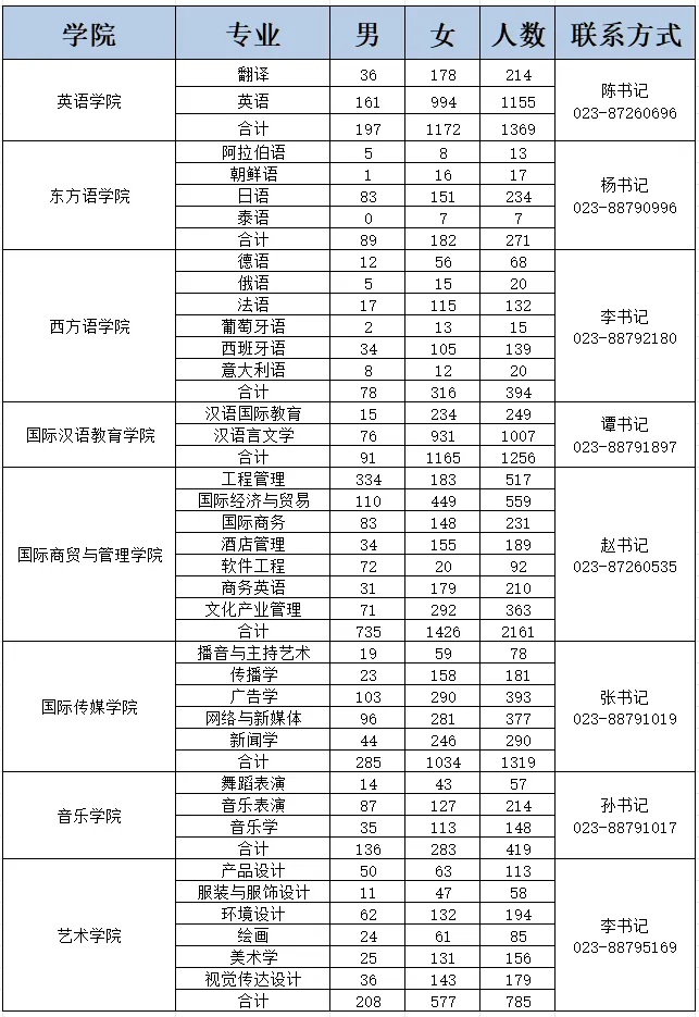 重庆外语外事学院2025届毕业生共7974人,其中,女生6155人,男生1819人,详情见下图: