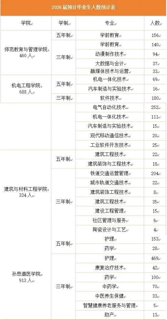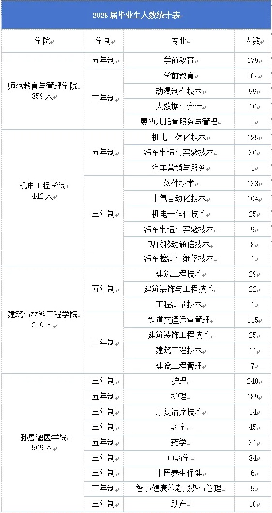 铜川职业技术学院2026届生源信息 铜川职业技术学院2026届毕业生共2395人,详情见下图: 铜川职业技术学院2025届毕业生共1580人,详情见下图: 推荐阅读铜川职业技术学院就业指导中心联系方式 陕西生源信息查询系统