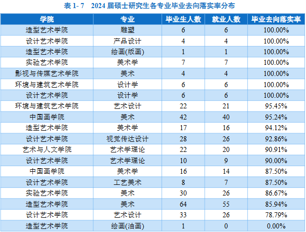 天津美术学院2024届毕业生共1367人,其中本科毕业生1040人,硕士毕业生327人,详情见下图: