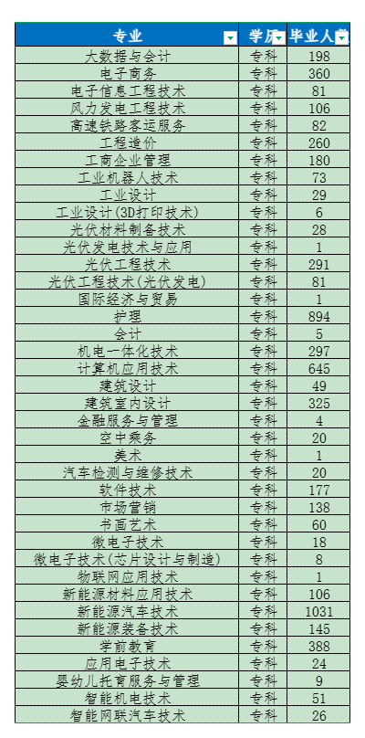 江西新能源科技职业学院2026届生源信息 链接:江西新能源科技职业学院2026届生源信息 江西新能源科技职业学院2025届毕业生共6219人,详情见下图: 推荐阅读江西新能源科技职业学院就业指导中心联系方式 江西生源信息查询系统