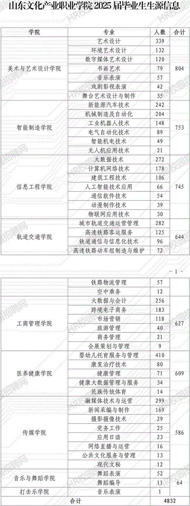 山东文化产业职业学院2025届毕业生共4832人,详情如下: