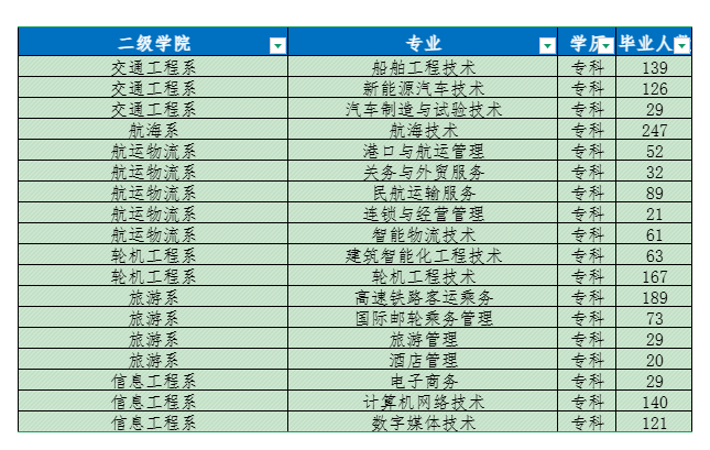 武汉航海职业技术学院2025届毕业生共1627人,详情见下图: