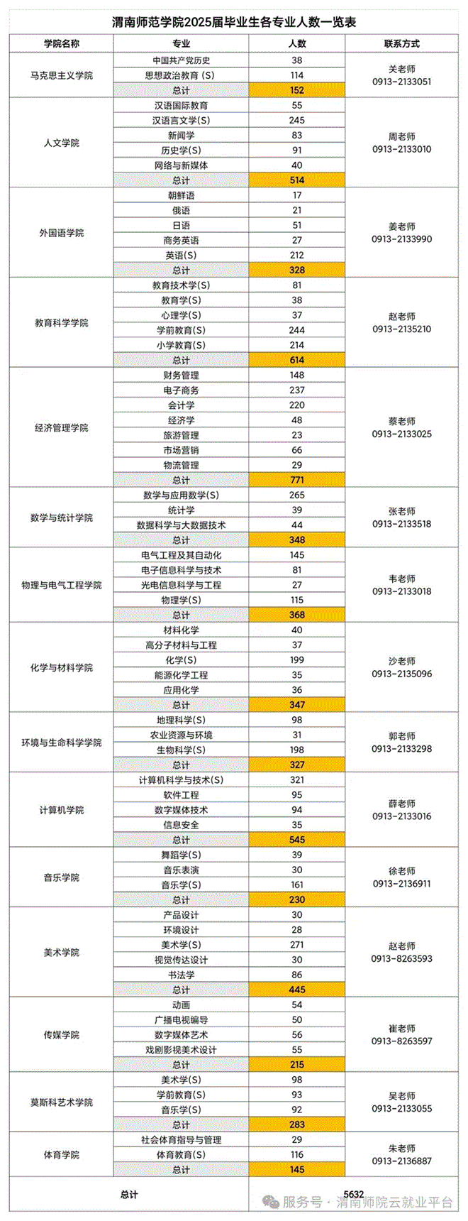 渭南师范学院2025届毕业生共5632人,详情见下图:
