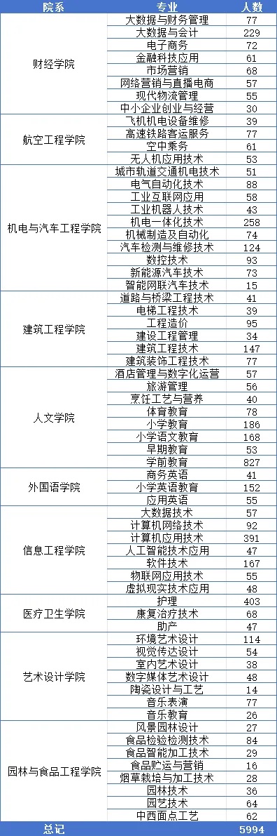 许昌职业技术学院2025届毕业生共计5994人,详情如下: