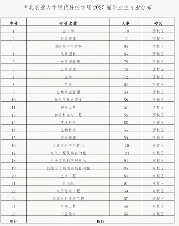 河北农业大学现代科技学院2026届生源信息 河北农业大学现代科技学院2026届毕业生共1616人,详情见下图: 河北农业大学现代科技学院2025届毕业生共1923人,详情见下图: 推荐阅读河北农业大学现代科技学院就业指导中心联系方式 河北生源信息查询系统