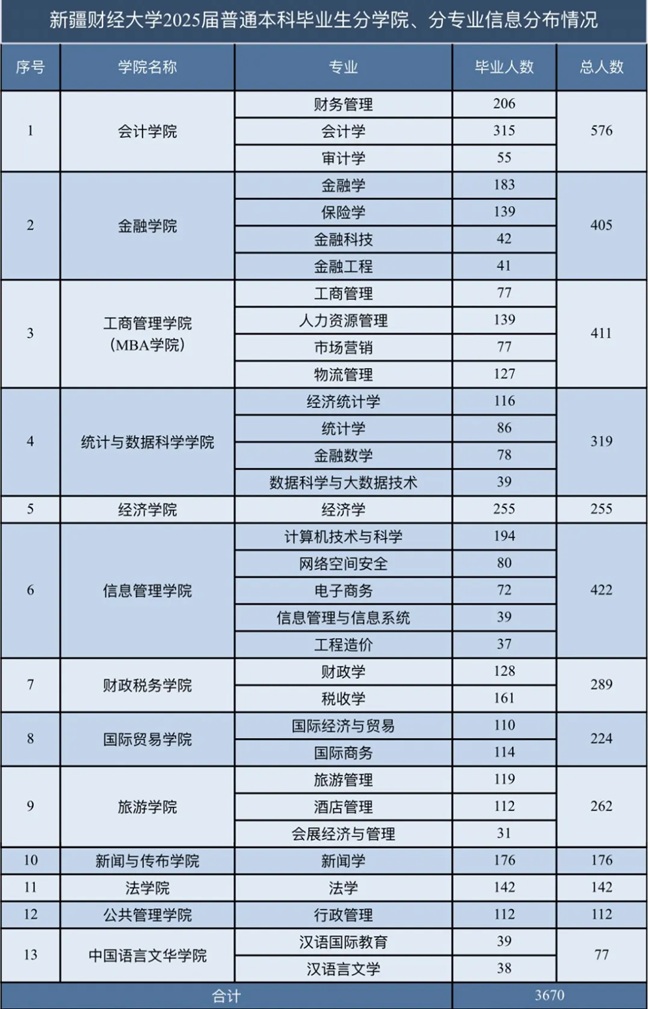 新疆财经大学2026届生源信息 链接:新疆财经大学2026届生源信息 新疆财经大学2024届毕业生共4624人,其中,本科毕业生3670人,研究生954人,详情见附件: 推荐阅读新疆财经大学招生就业办公室联系方式 新疆生源信息查询系统