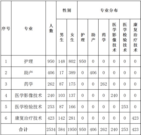 新疆现代职业技术学院2024届毕业生共2534人,其中,女生1950人,男生584人,详情如下: