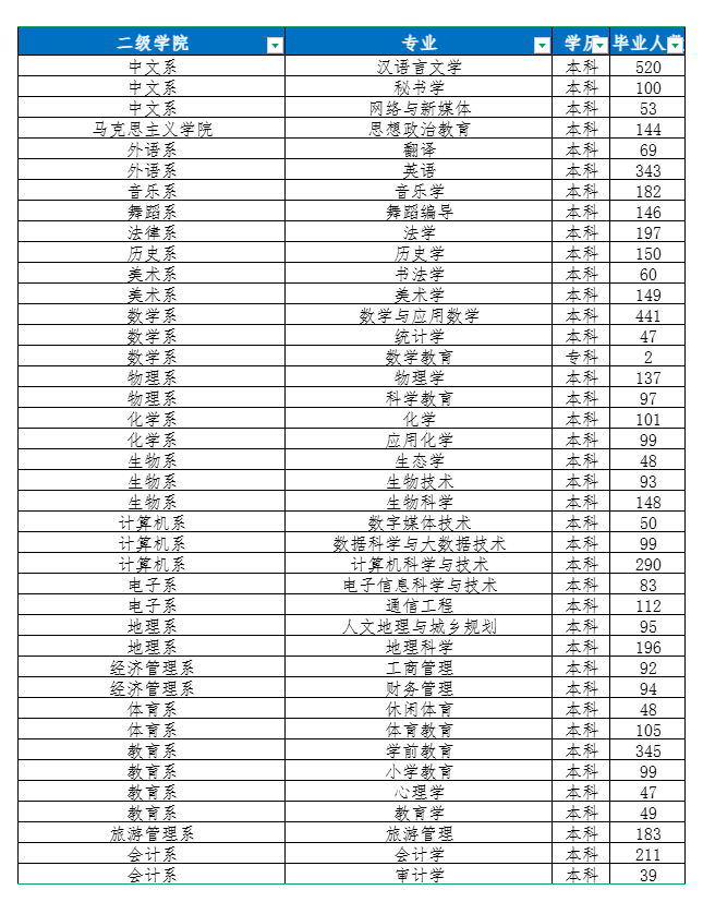 忻州师范学院2025届毕业生共5560人,详情见下图: