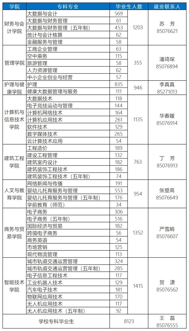 浙江长征职业技术学院2025届毕业生共8123人,详情见下图: