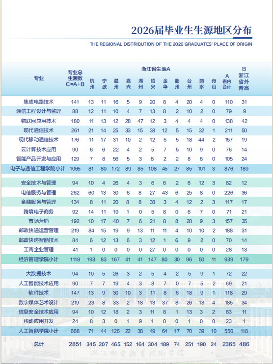 浙江邮电职业技术学院2026届毕业生共2851人,详情见下图: