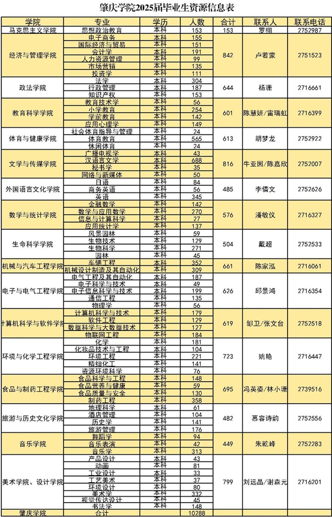 肇庆学院2025届毕业生共10288人,详情见下图: