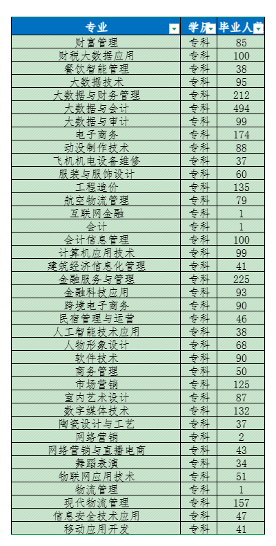 郑州财税金融职业学院2025届毕业生共3395人,详情如下: