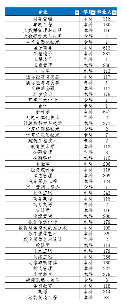 郑州财经学院2025届毕业生共7328人,详情见下图:
